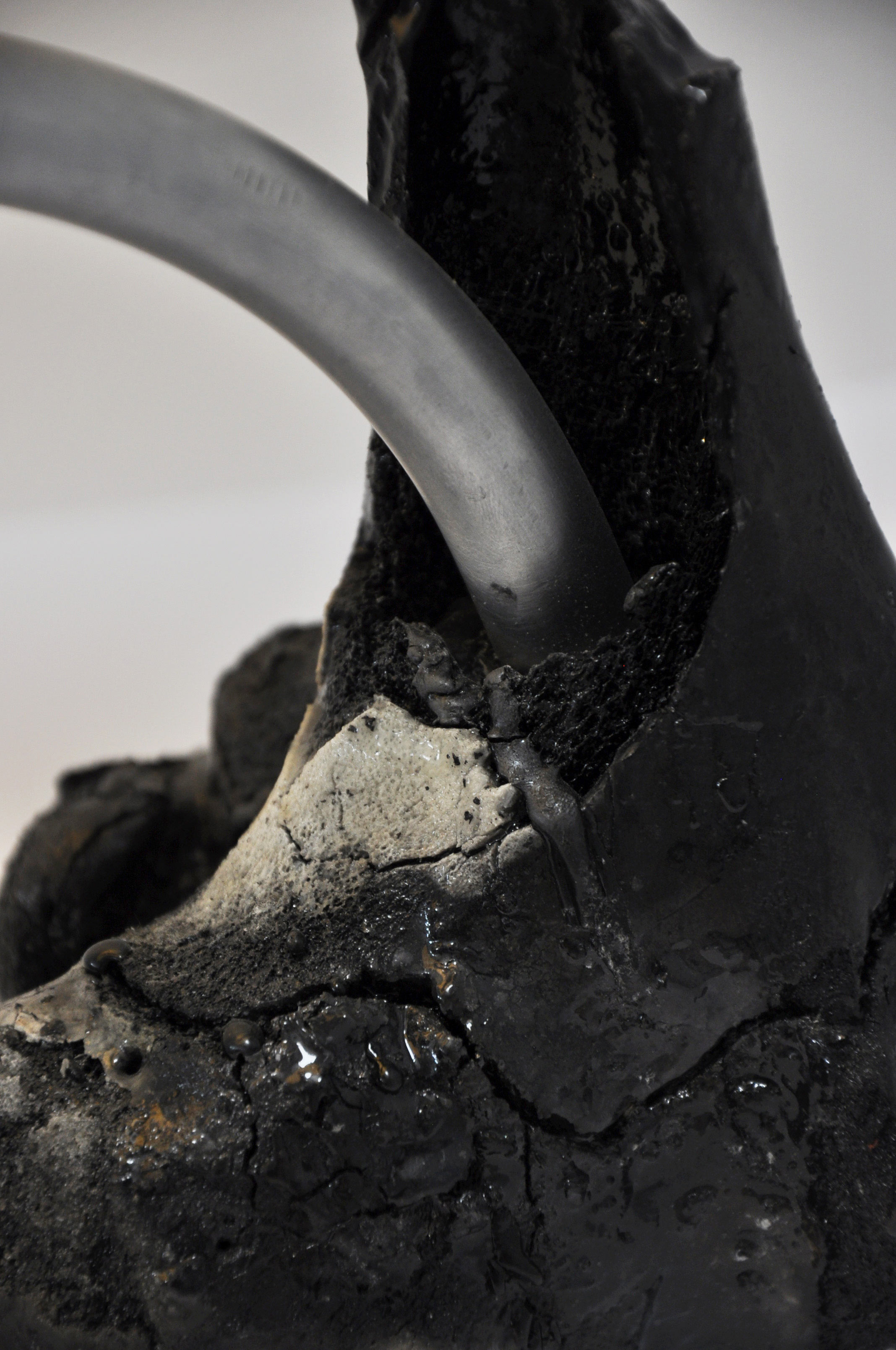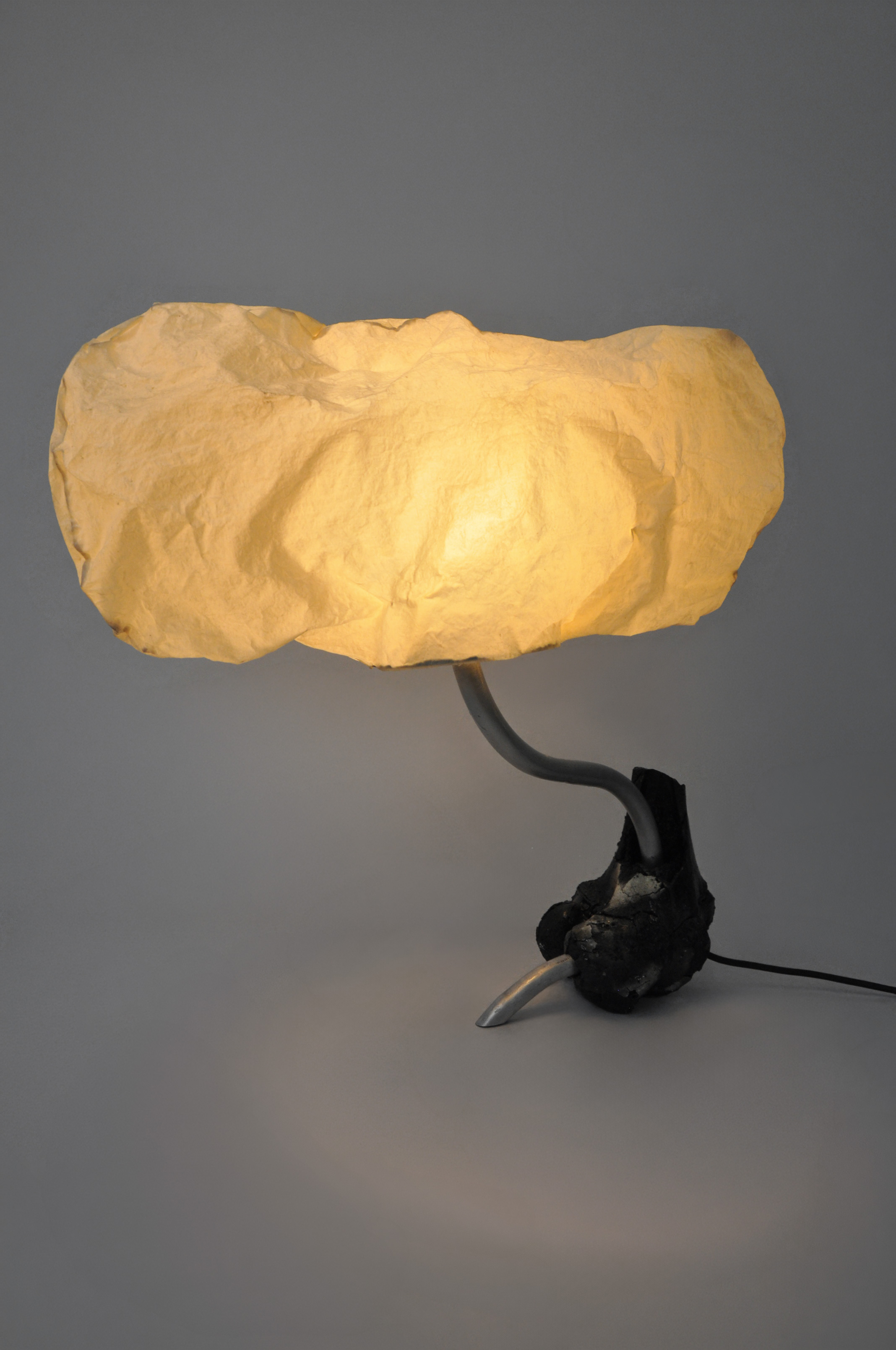 Cotton, carbonised bone, resin, biocomposite, recycled aluminium, LED